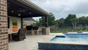CHRCovered Patio with Outdoor Grill Station, Granite Countertop, Sink, and Decorative Wall – Custom Outdoor Kitchen